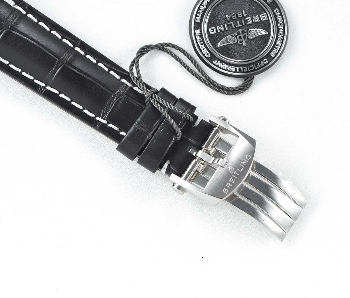 BRACELET: Black Croc Print Calf Leather Strap with Deployant Buckle