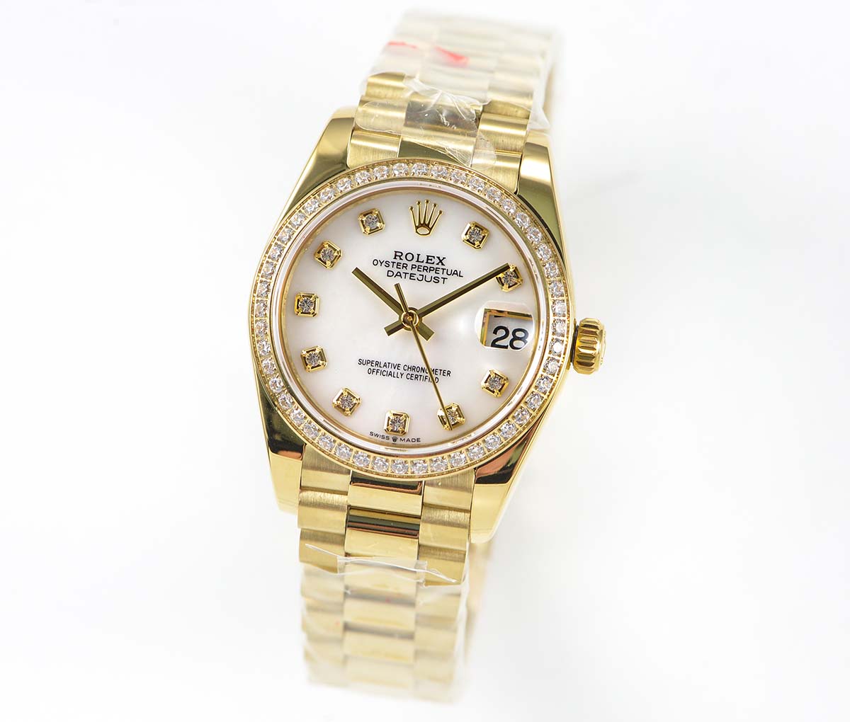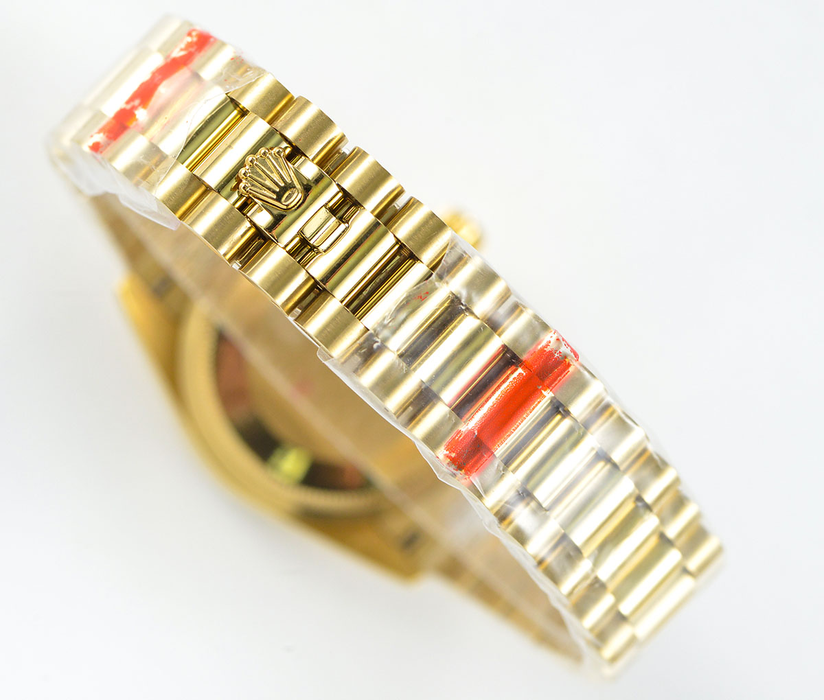 BRACELET: Solid Stainless Steel yellow gold plated Presidential Bracelet with New Style Rolesor Deployant Buckle