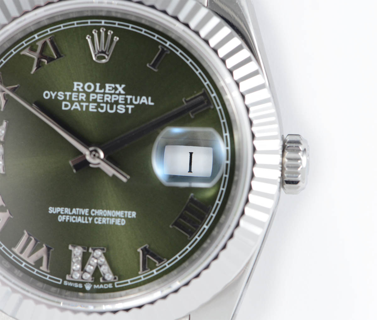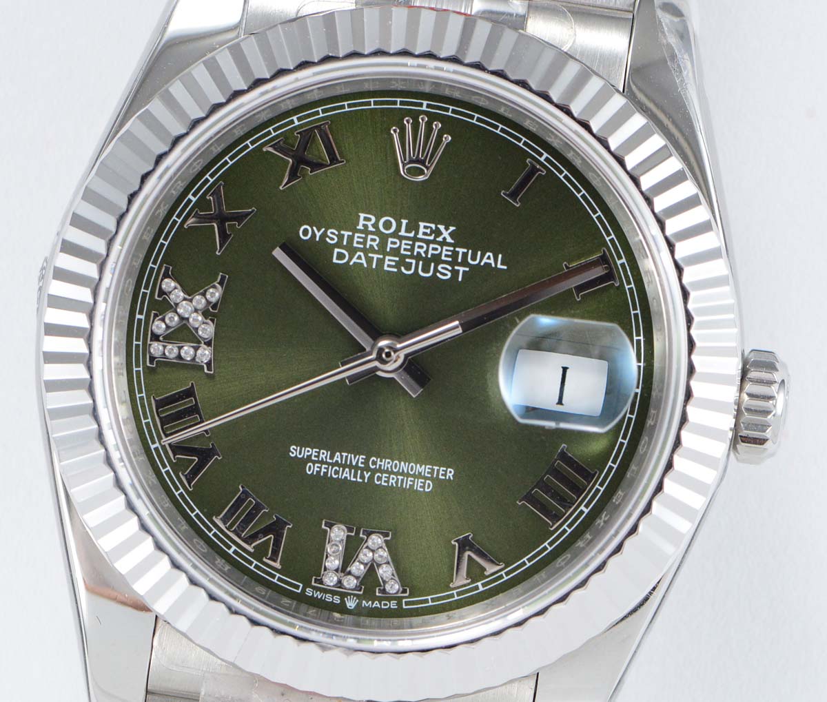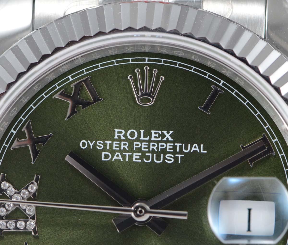 DIAL COLOR: green Dial with Roman Numeral Markers