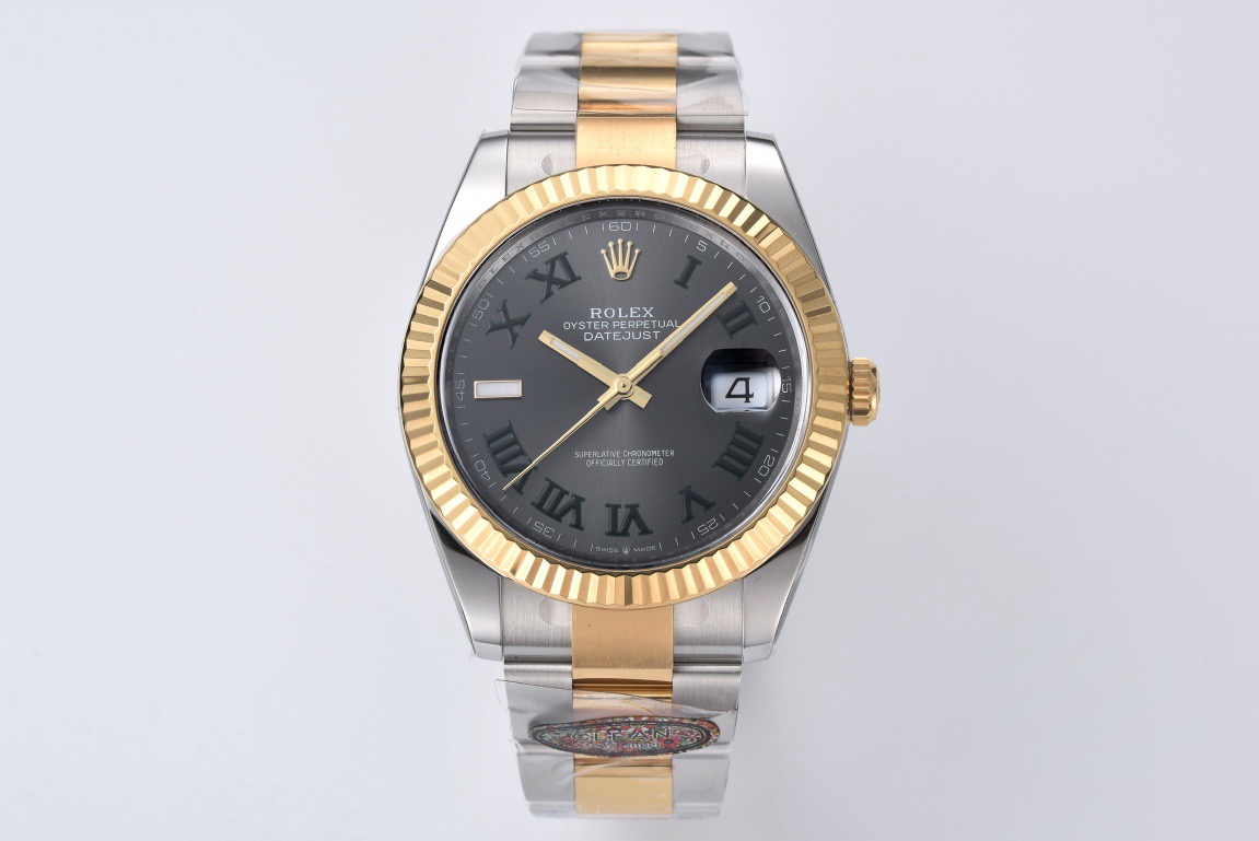DIAL COLOR: grey dial green roman numbers