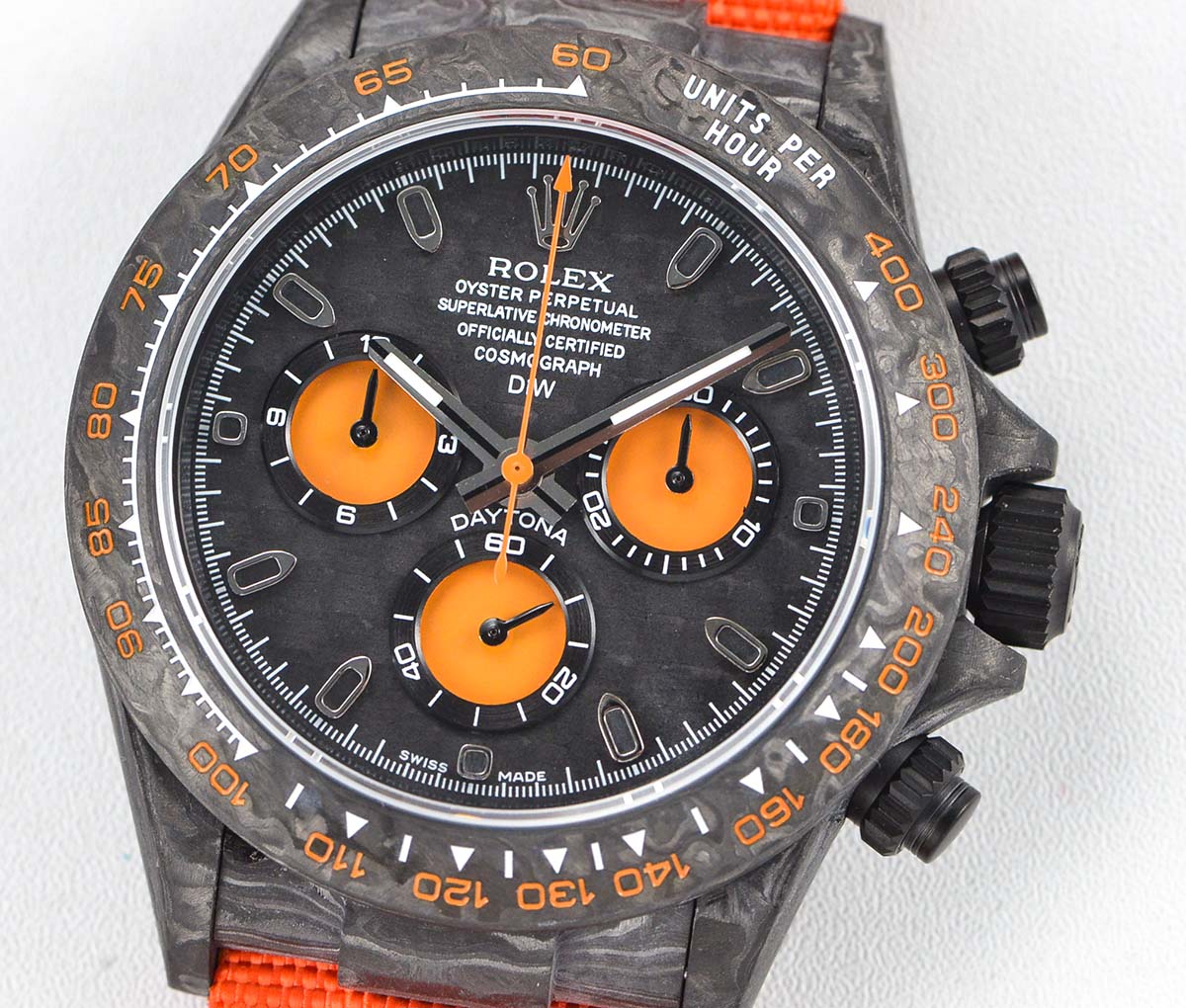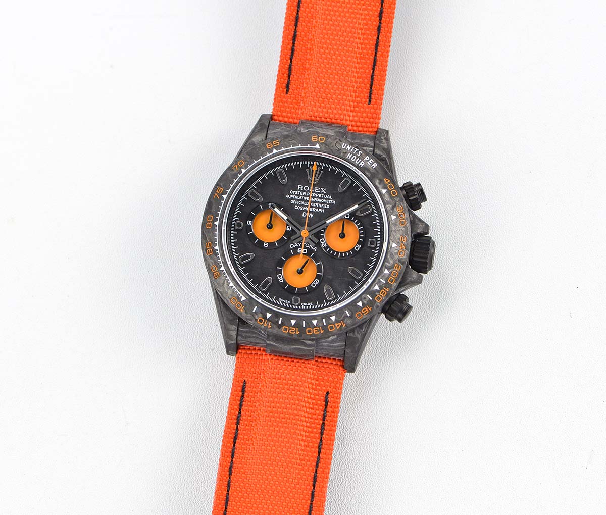 DIAL COLOR: Black Dial with orange Subdials Gold Stick Markers