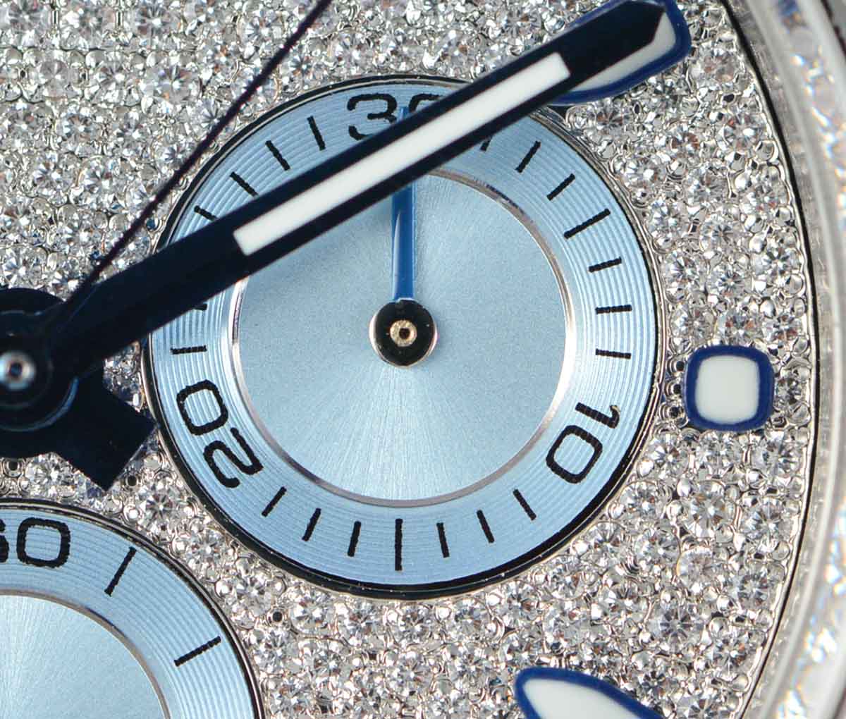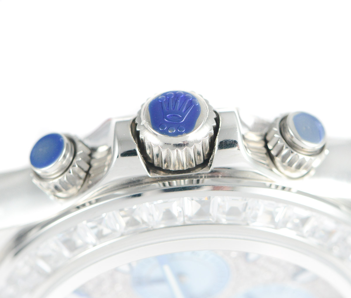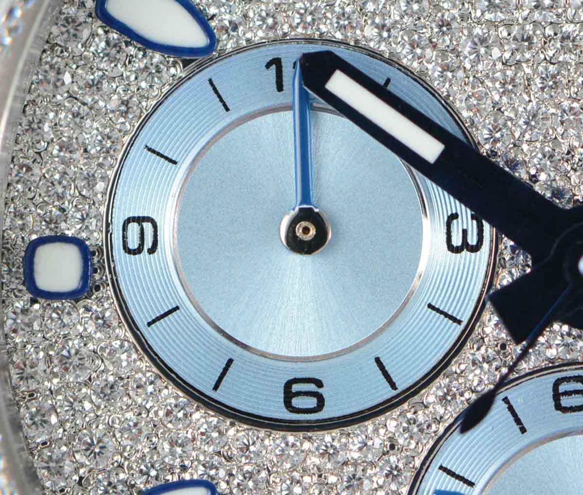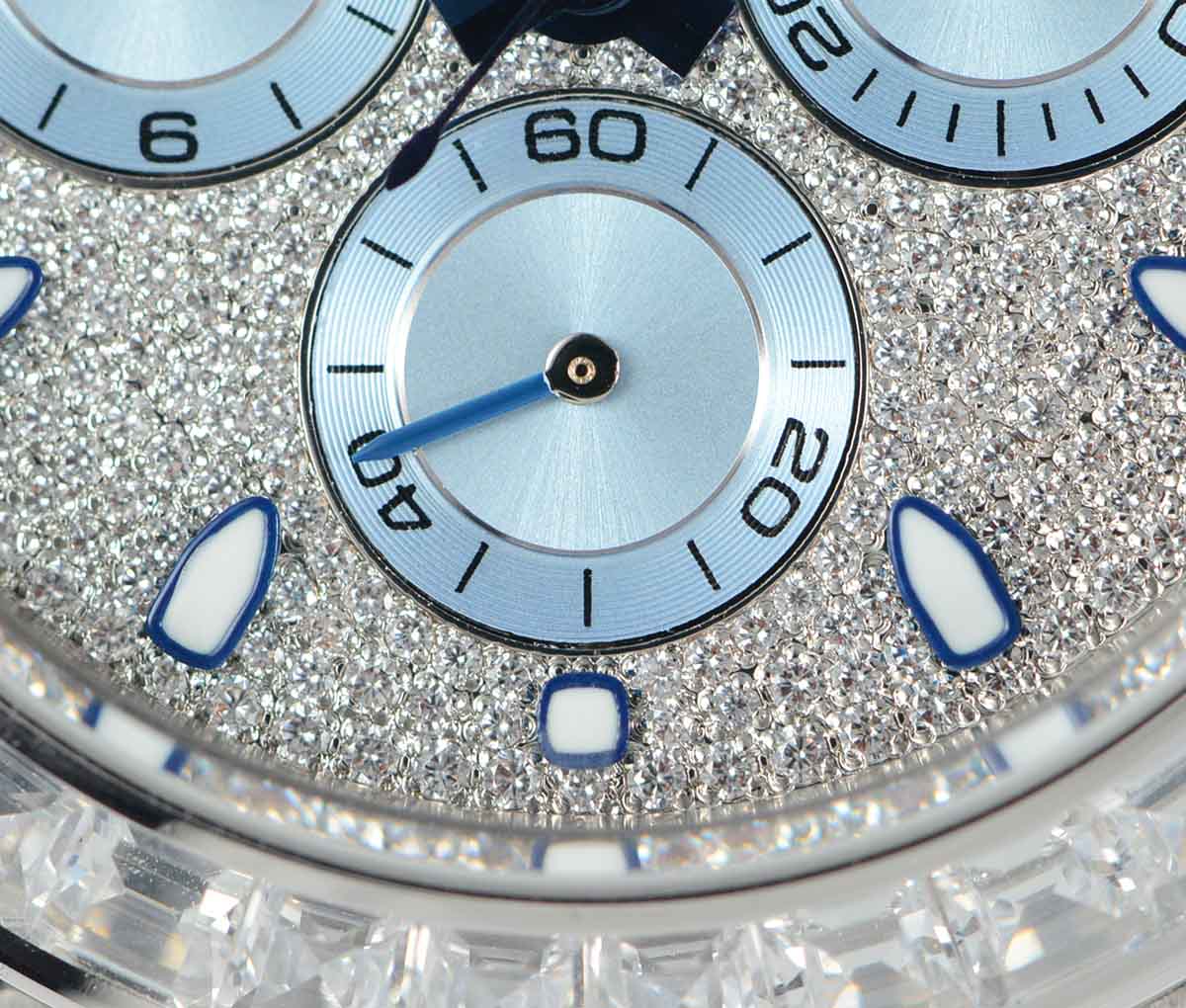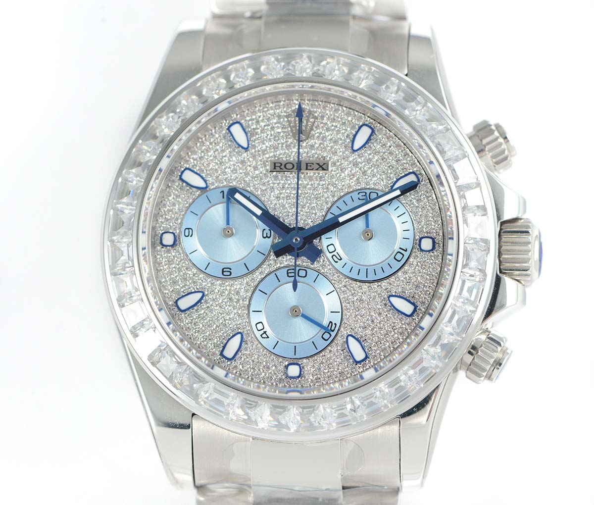 DIAL COLOR: White Dial with diamonds encrested and stick markers and blue subdials