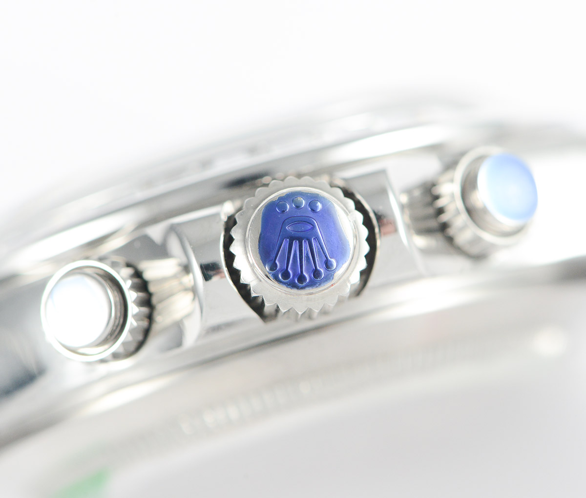 FRONT GLASS: Sapphire Crystal, (Etched Rolex emblem at 6:00 on the sapphire glass)