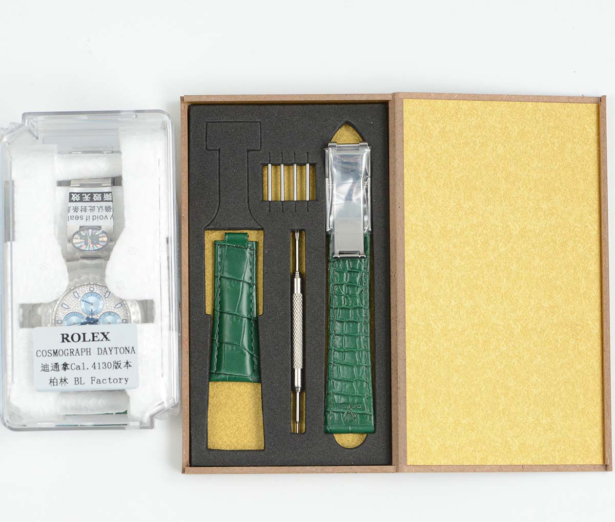 BEZEL: green steel bezel with diamonds