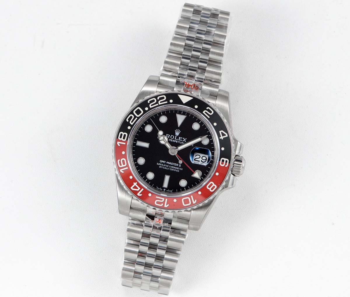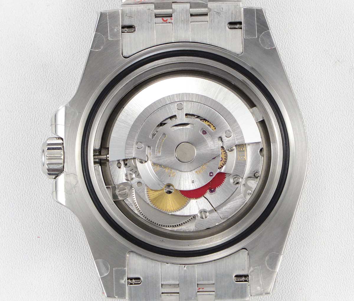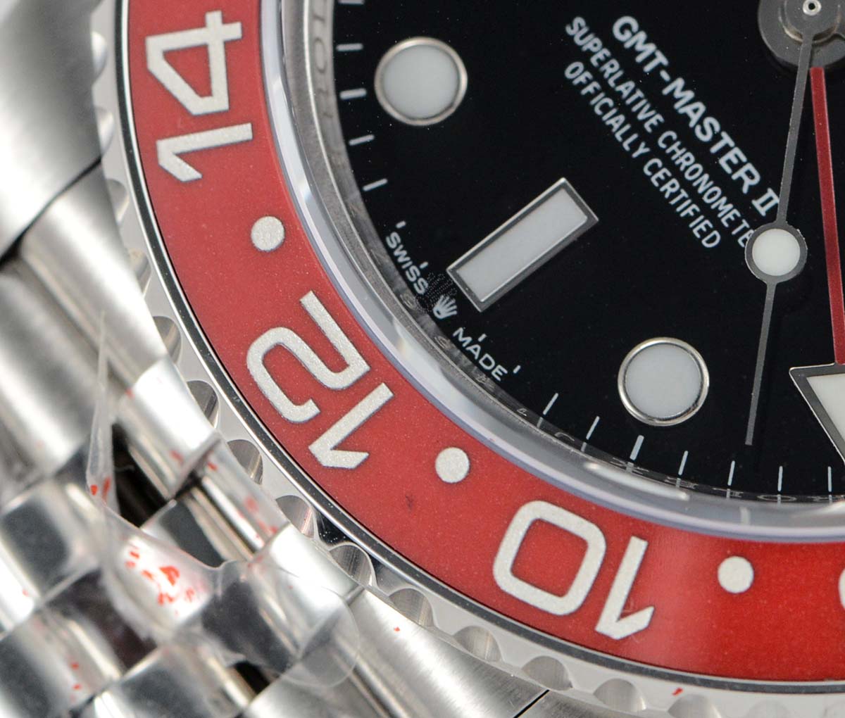| Bezel | Bi-directional rotating Red/Black ceramic bezel |