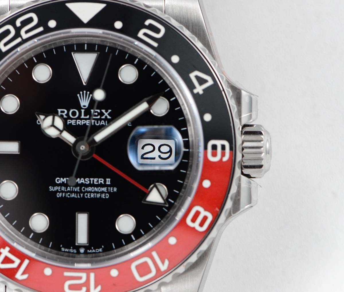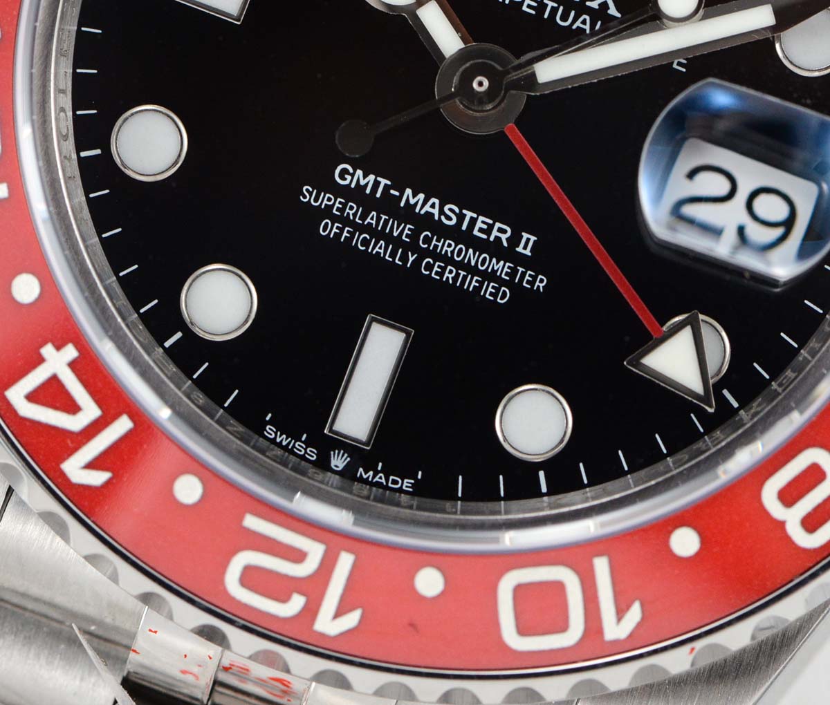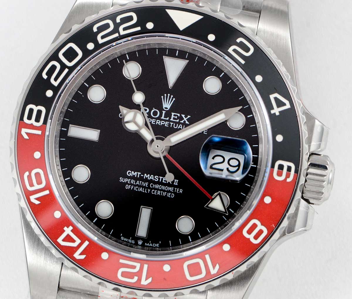 | Bezel | Bi-directional rotating Red/Black ceramic bezel |