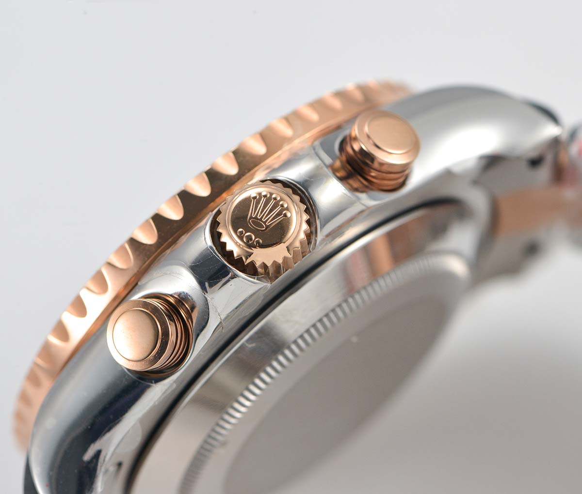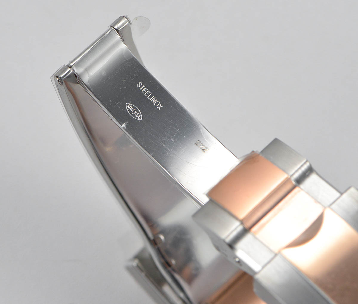 | Strap | 904l Stainless steel bracelet with 18K rose gold plated middle links |