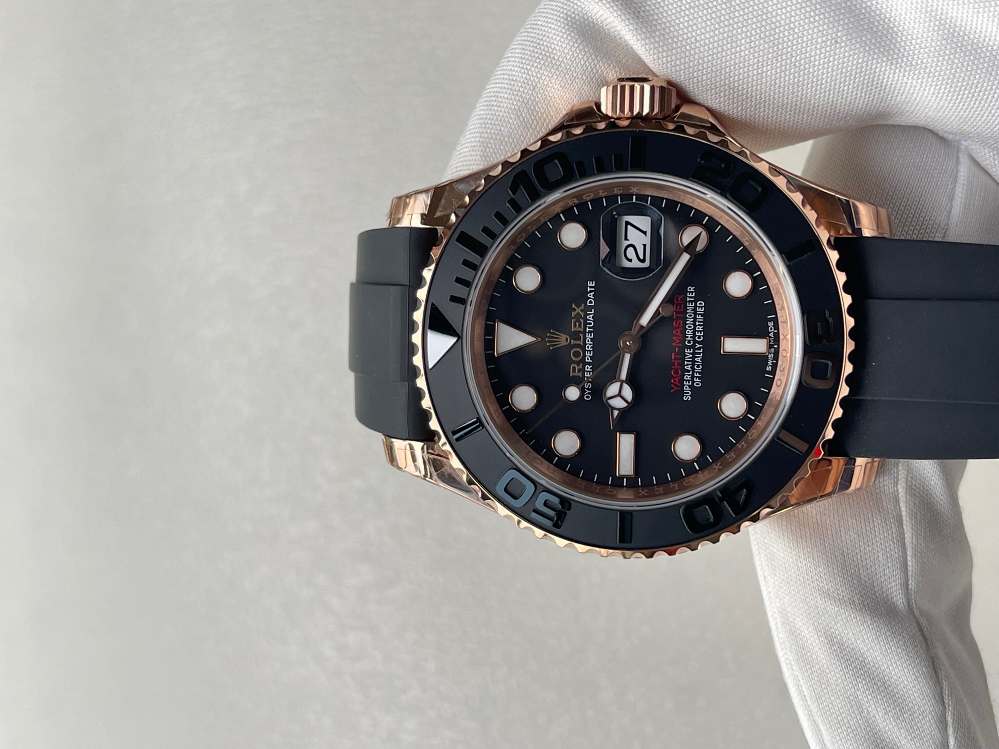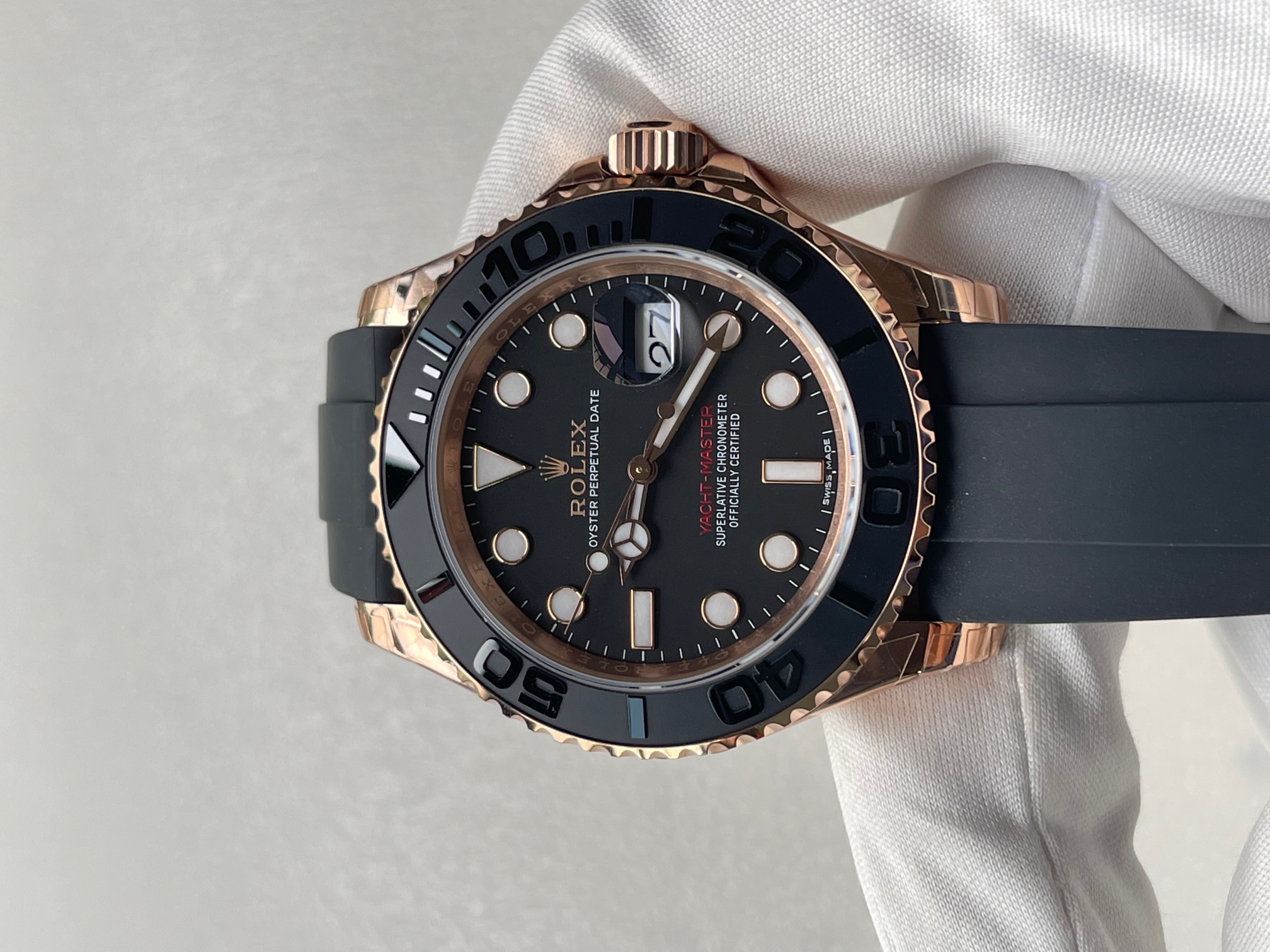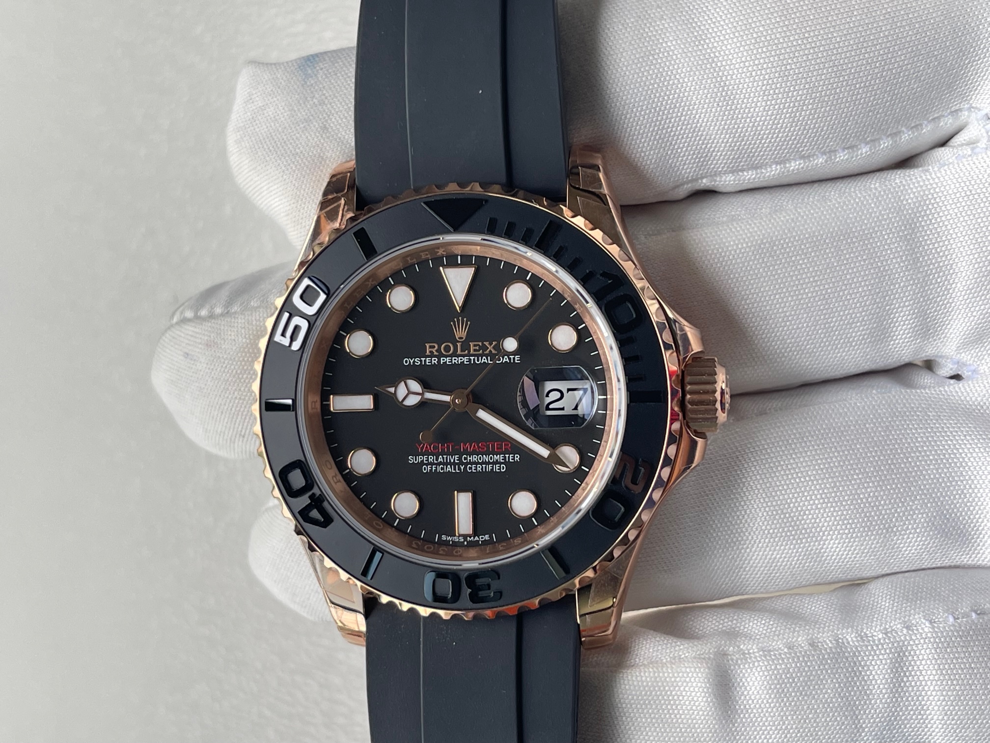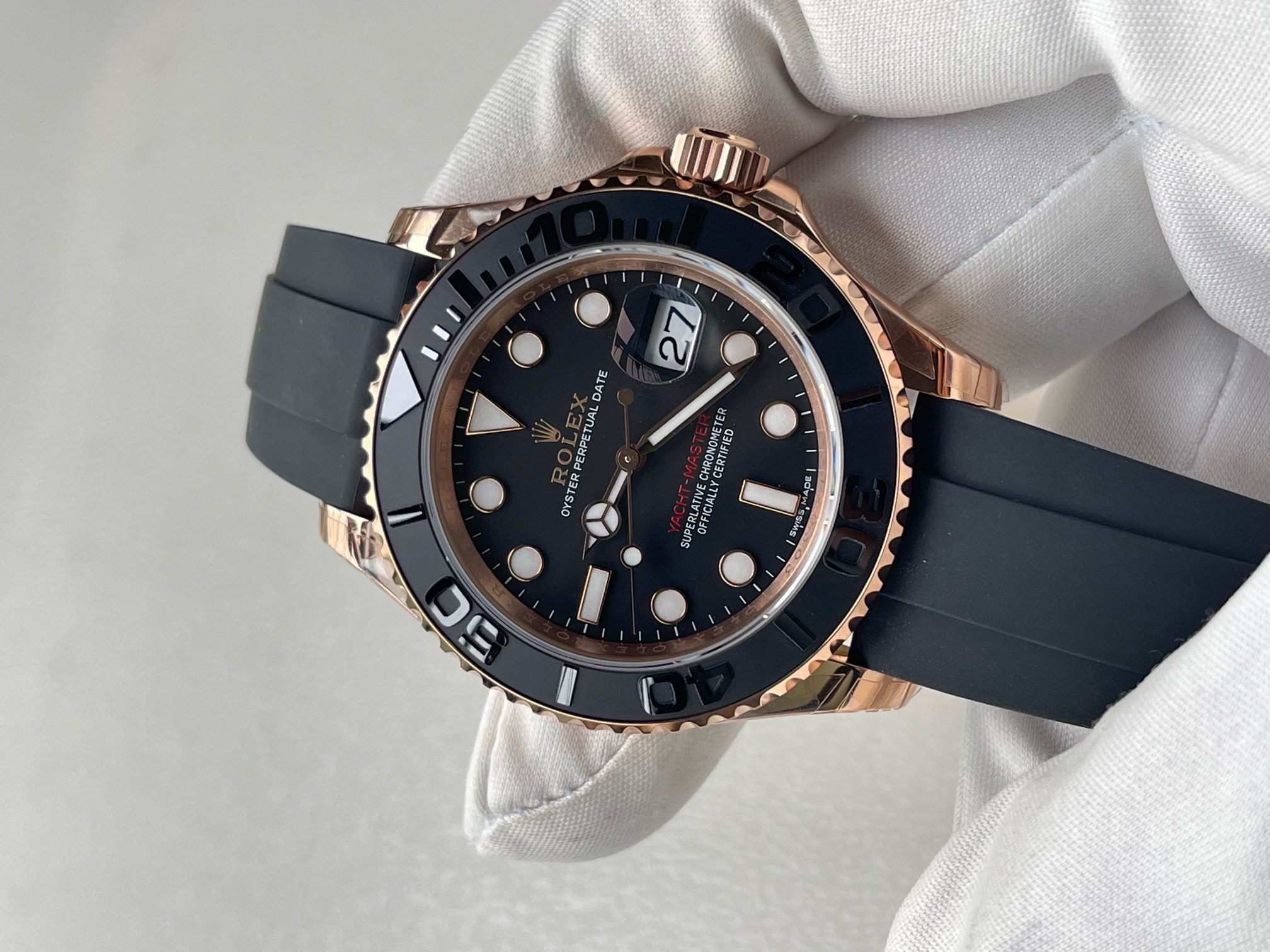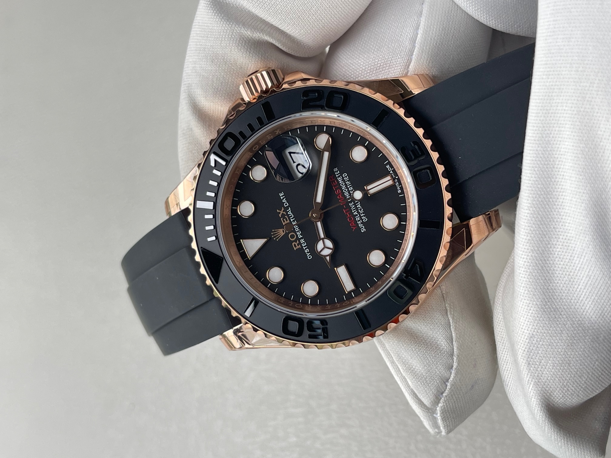 CASE MATERIAL: 18K Rose Gold Thick Plated on Solid Stainless Steel 904 with ceramic bezel