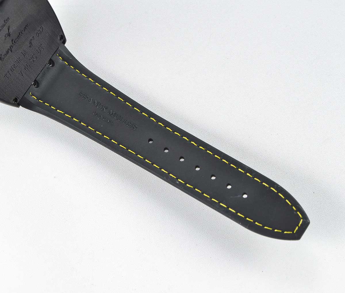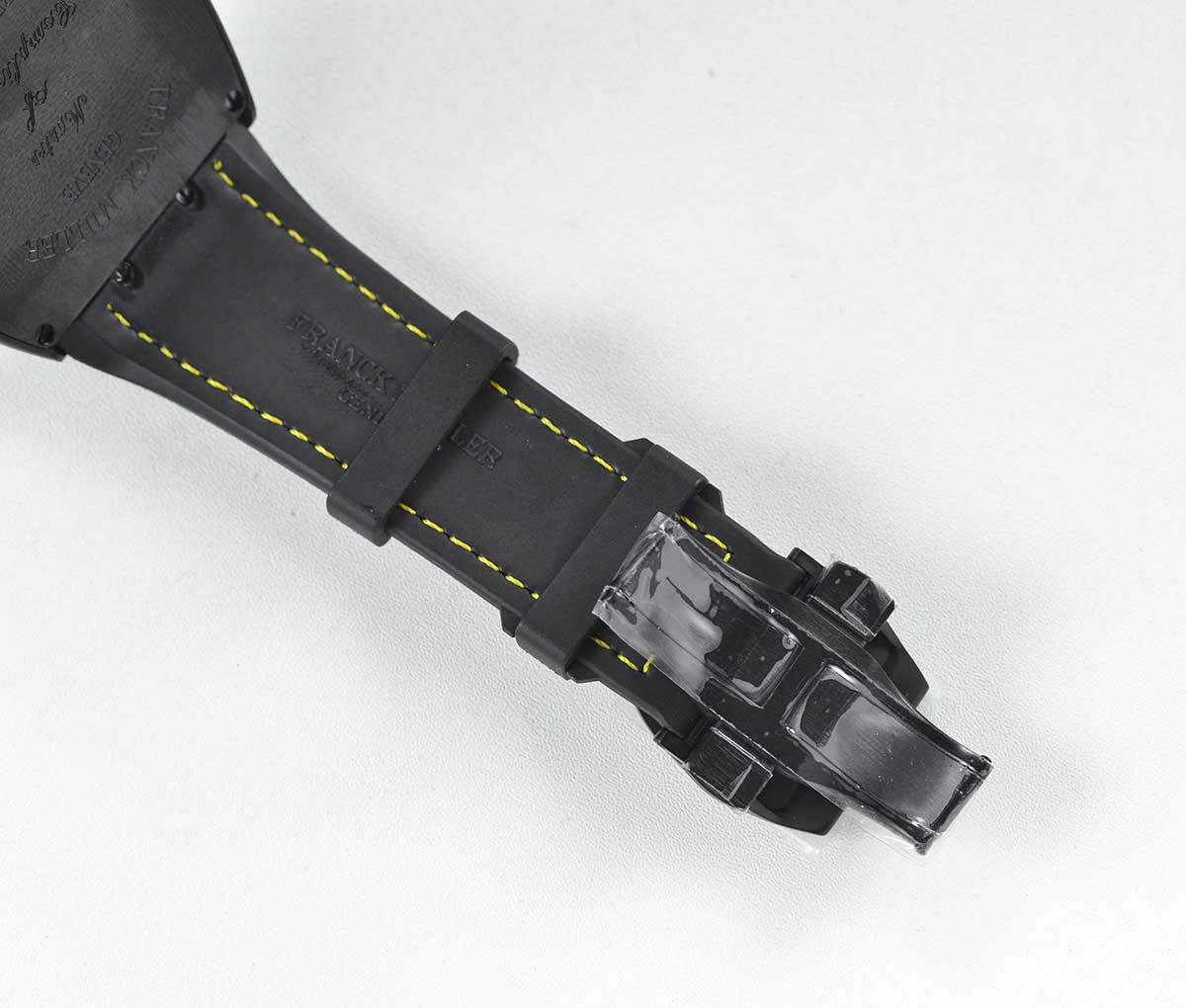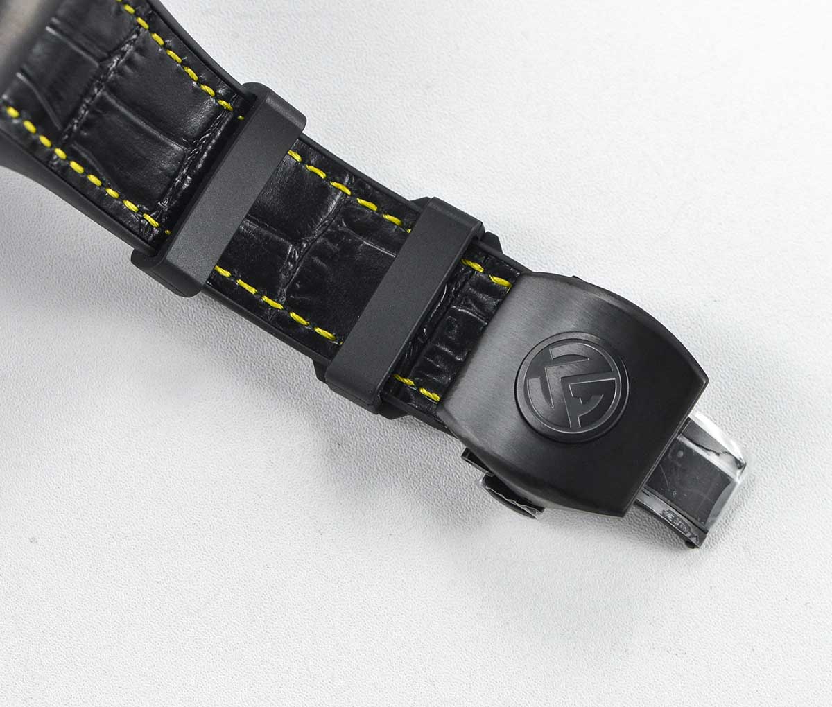 BRACELET: Black Leather Clad Textured Rubber Strap with Deployant Clasp