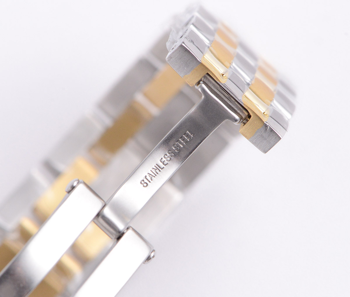 | Strap | two tone gold plated stainless steel bracelet |