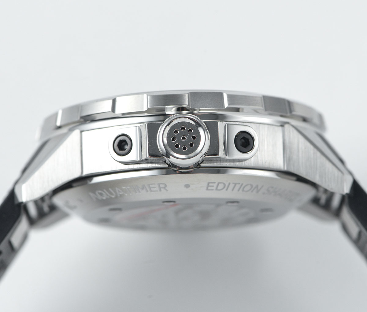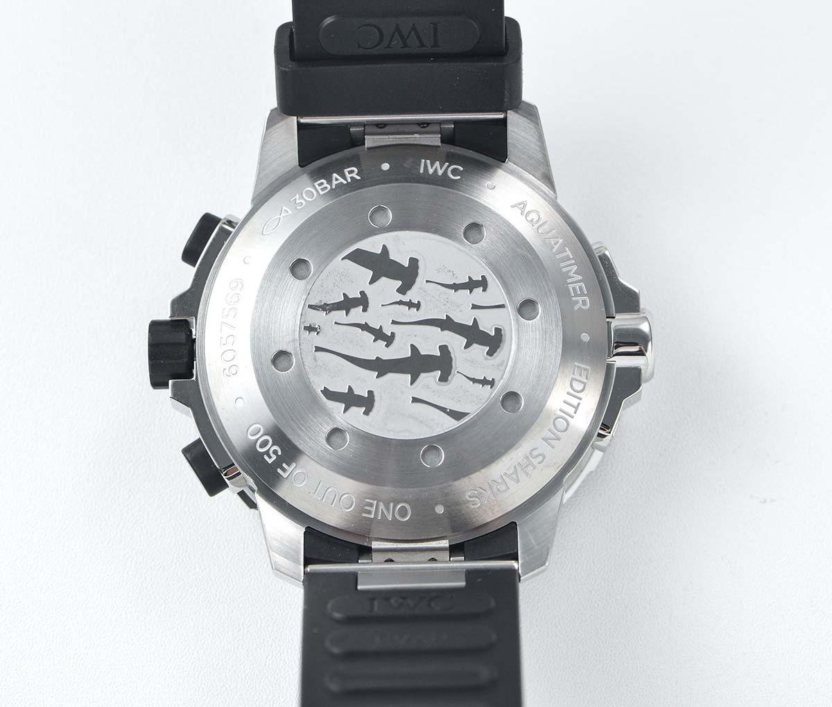 CASE BACK: Solid case back with Detailed Engraving with "Sharks" graphic