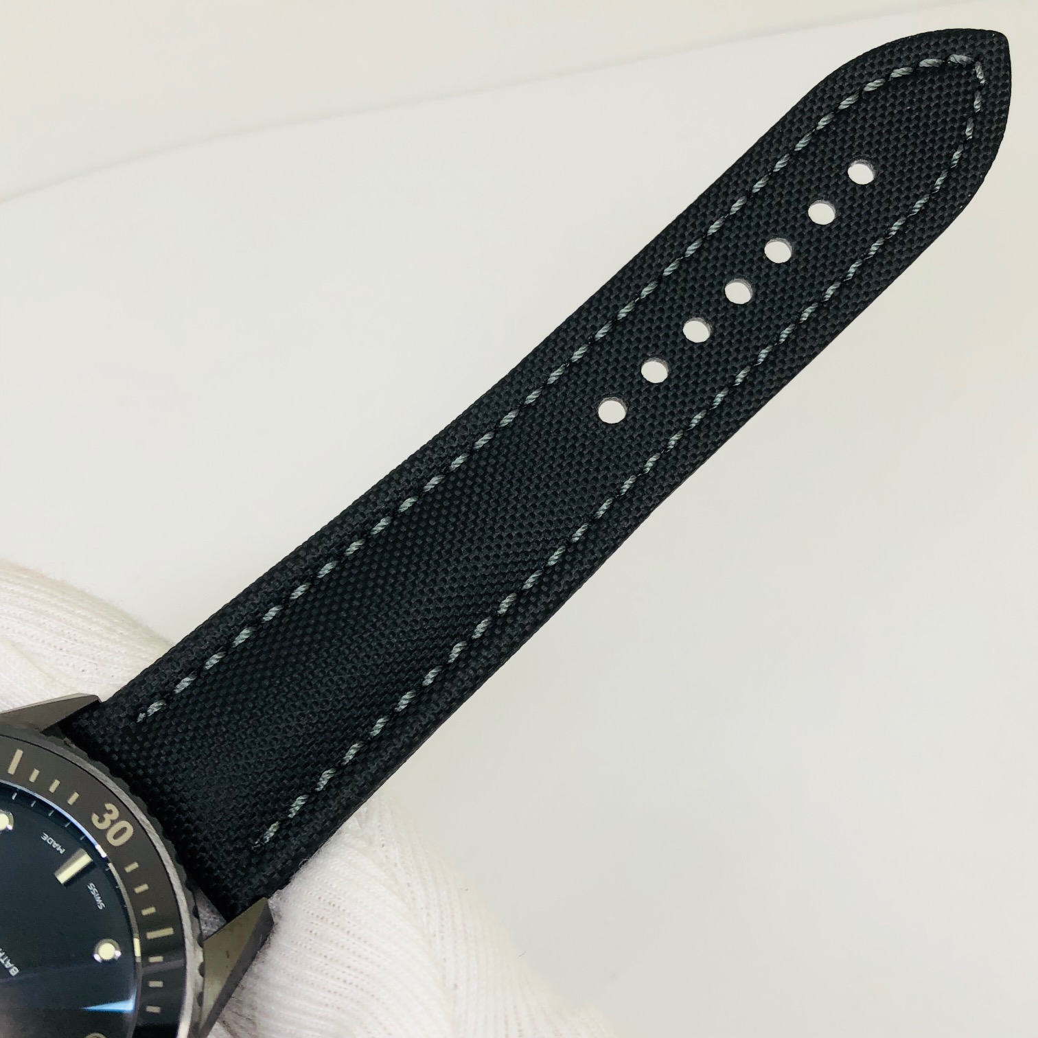 BRACELET: Black Colored Nylon Clad Sail Canvas Leather Strap with Tang Buckle (