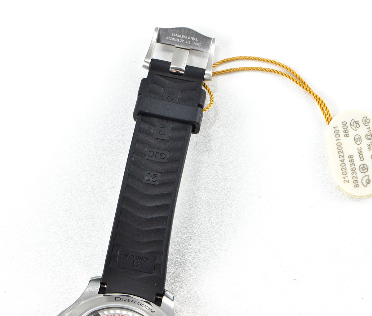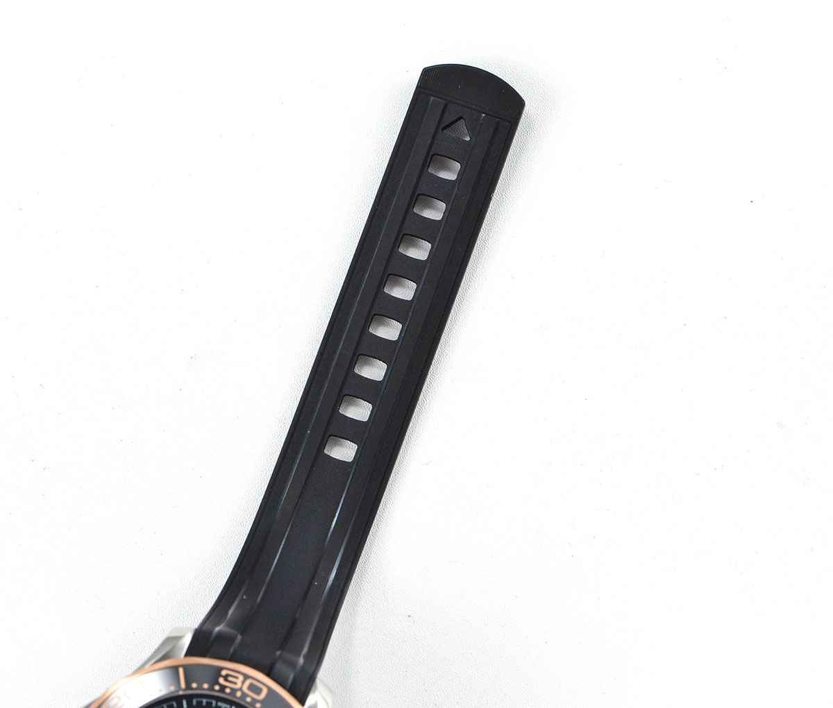BRACELET:                Black Rubber Strap with Tang Buckle