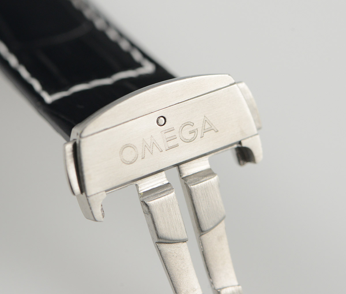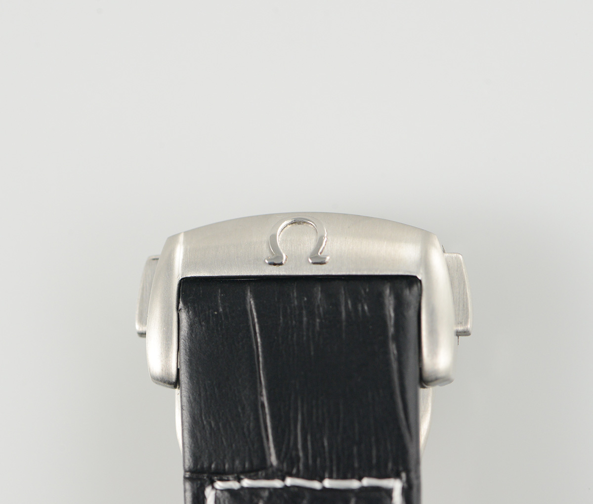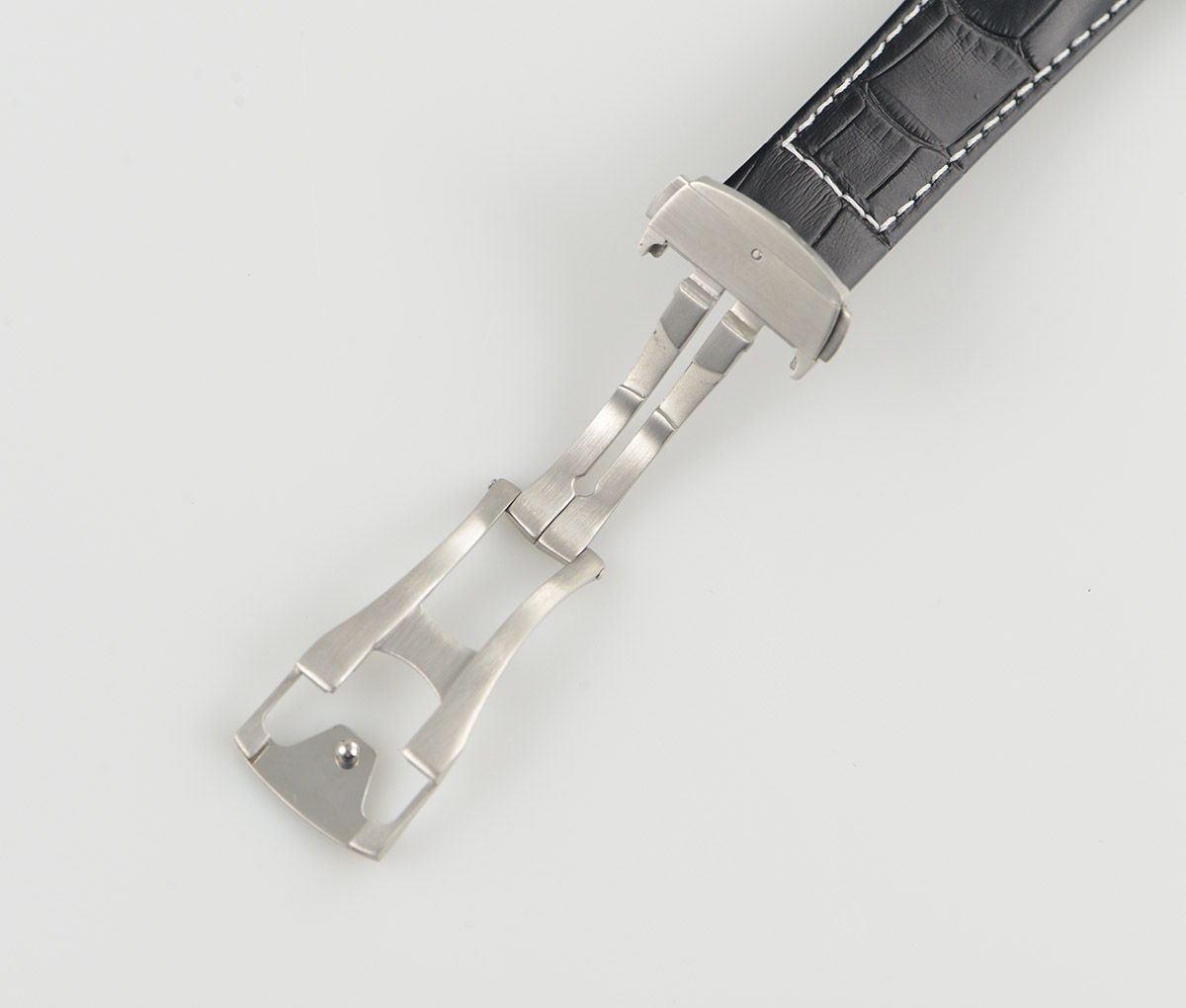 BRACELET: Black Embossed Croc Print Calf Leather Strap with Deployant Buckle