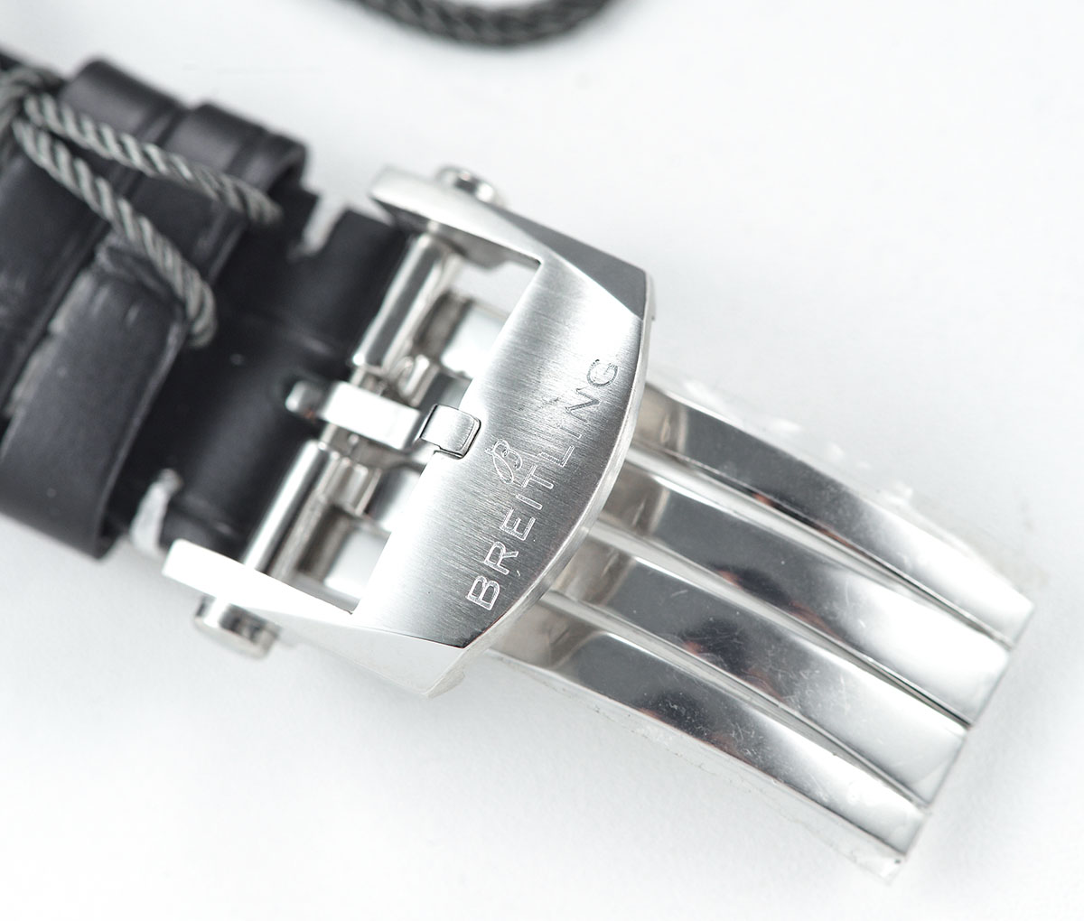 BRACELET: Black Croc Print Calf Leather Strap with Deployant Buckle