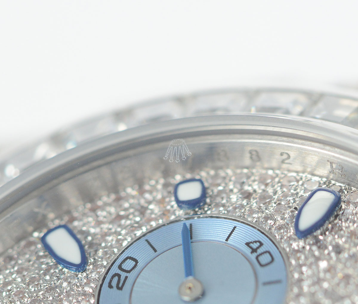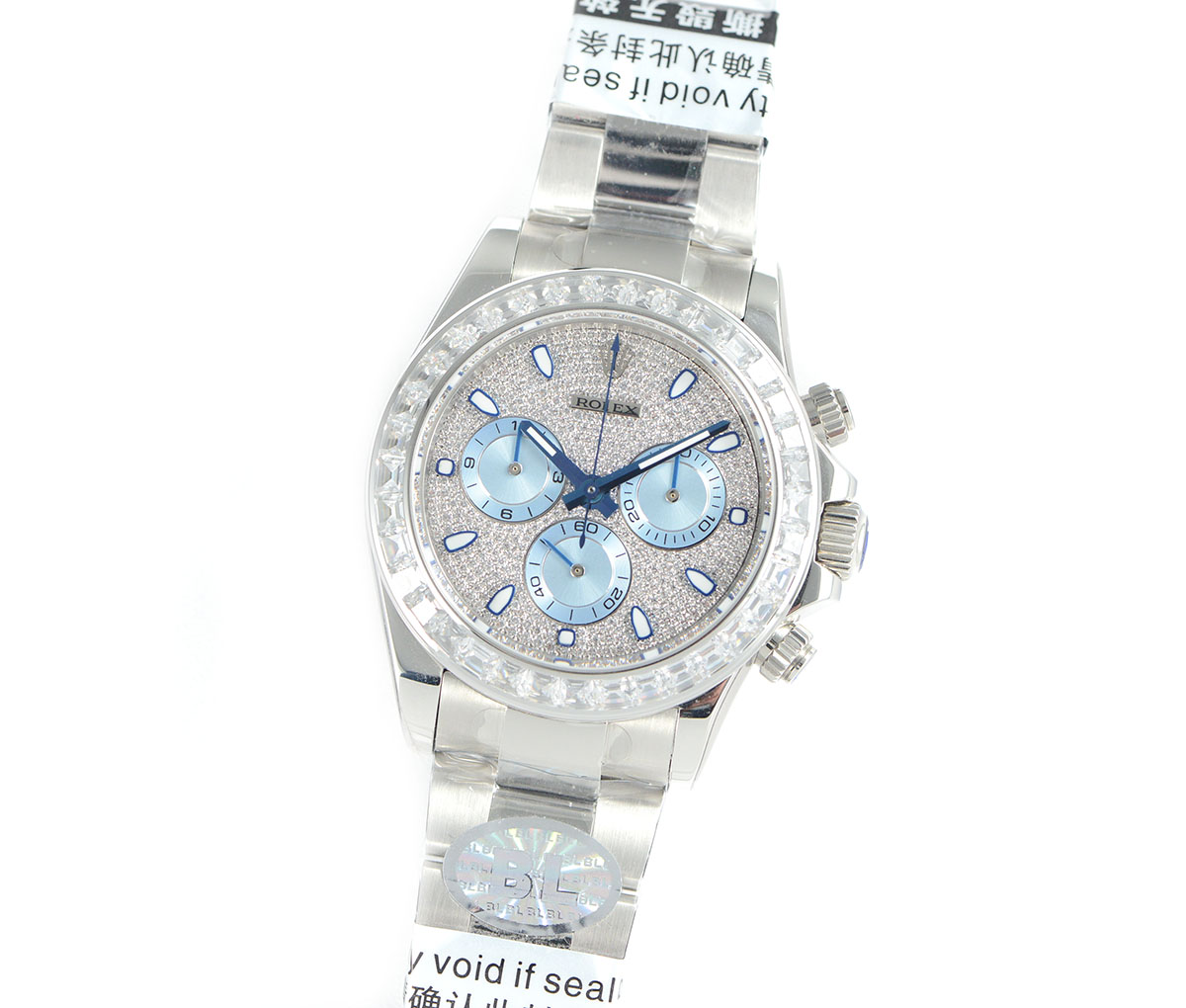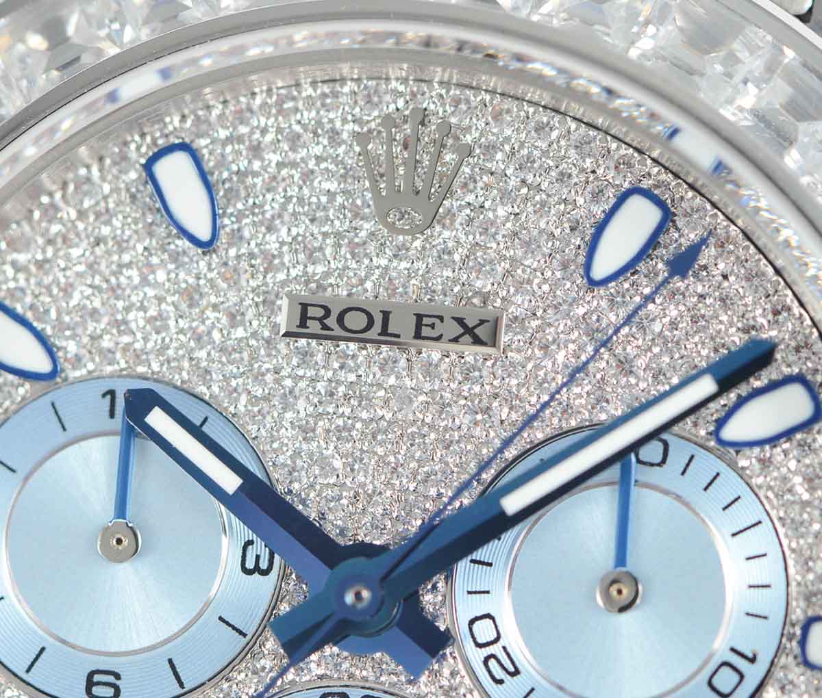 DIAL COLOR: White Dial with diamonds encrested and stick markers and blue subdials