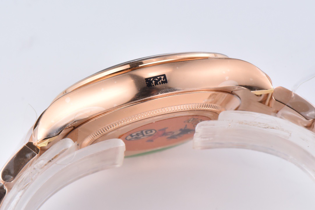 CASE BACK: Solid case back with rose gold plating