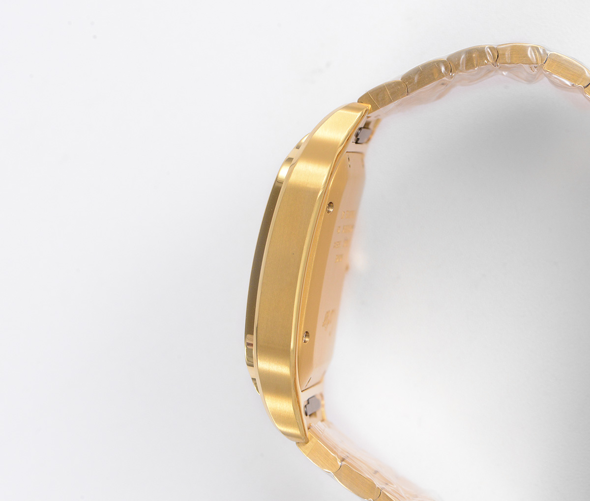case solid steinless steel with yellow gold plating